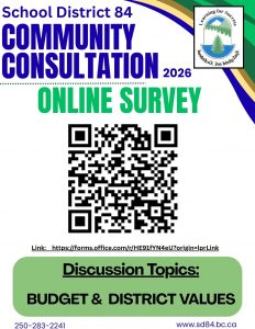 On behalf of the Board of Education, I would like to welcome you to the SD84 (Vancouver Island West) website.